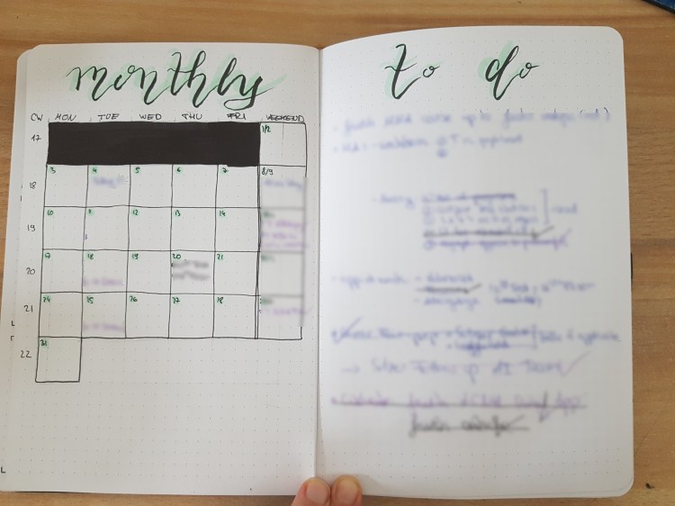 As you can see, I like to use some kind of theme every month – inspired mostly by bullet journal YouTubers and Instagrammers – but then I often end up switching it up during the month to not having to draw the same doodles over and over again. If I am not feeling motivated, I also completely abandon themes and just use simple to do lists throughout the month. . For me, it all depends on my creative energy. Remember, there are no rules on what a bullet journal must look like. Very importantly, it is not at all necessary to make your bullet journal “pretty” and colorful. First and foremost it should be functional for you. For me this works well, since I enjoy drawing and the drawings motivate me to actually use my journal. Classic calendars, on the other hand, bored me and mostly ended up unused in my drawers after a few weeks, replaced by a plethora of to do lists strewn about. My way might not work for you – it actually probably won’t! Bullet journaling is all about finding the best planning spreads and layouts for you. If for example classic ready-made journals have worked well for you so far, there really is no reason for you to pick up bullet journaling except out of maybe curiosity.
