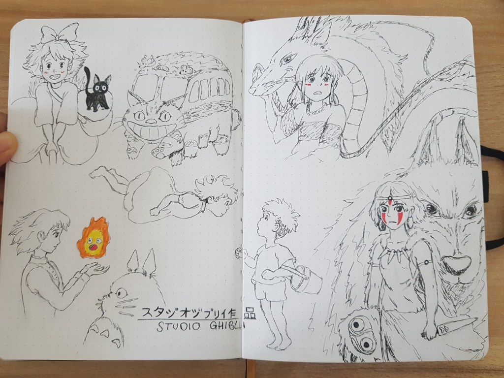 But leafing through my bullet journal, you will also find more “traditional” drawings and lettering. There’s e.g. a Ghibli page, a rendition of Dragon Age’s Cullen Rutherford and Aang from Avatar.
