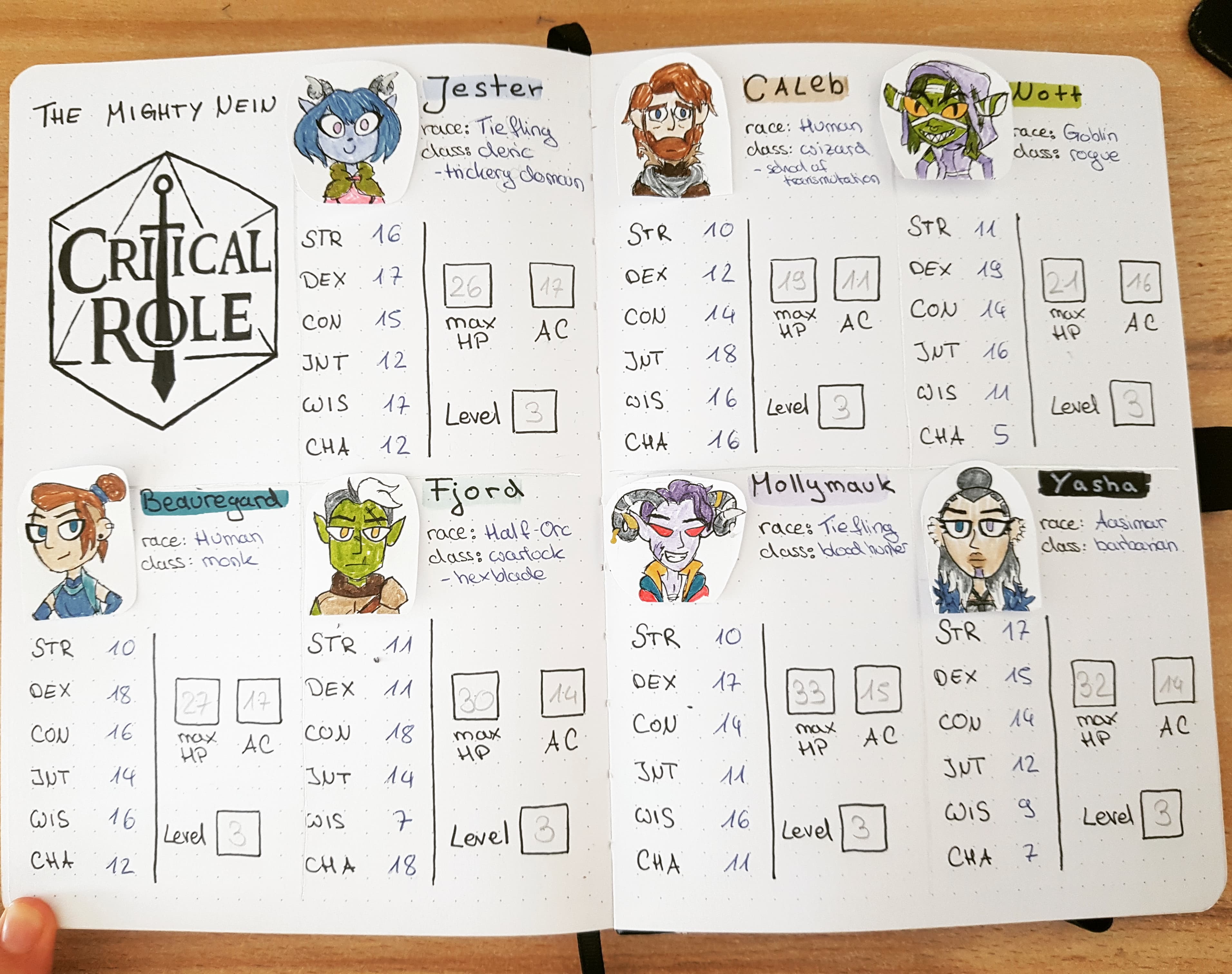 - an overview of all character sheets of the Mighty Nein campaign – a D&D campaign I started watching on YouTube some time ago (much less reasonable)
